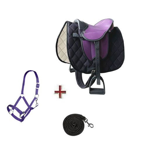 Set Holzpferde Sattel+ Halfter mit Strick bis 145 cm Bauchumfang LILA