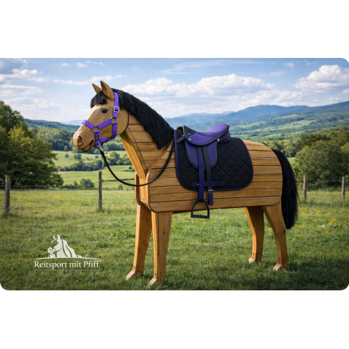 Set Holzpferde Sattel + Halfter mit Strick bis 145 cm Bauchumfang lila