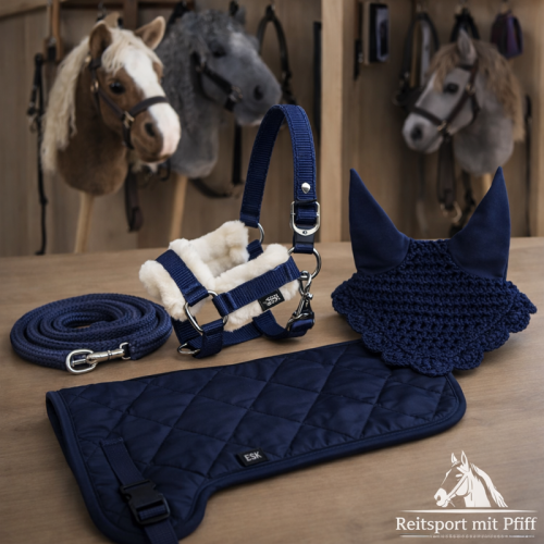 Set Satteldecke mit Halfter Set Fliegenohren Zubehör Hobby Horse Navy